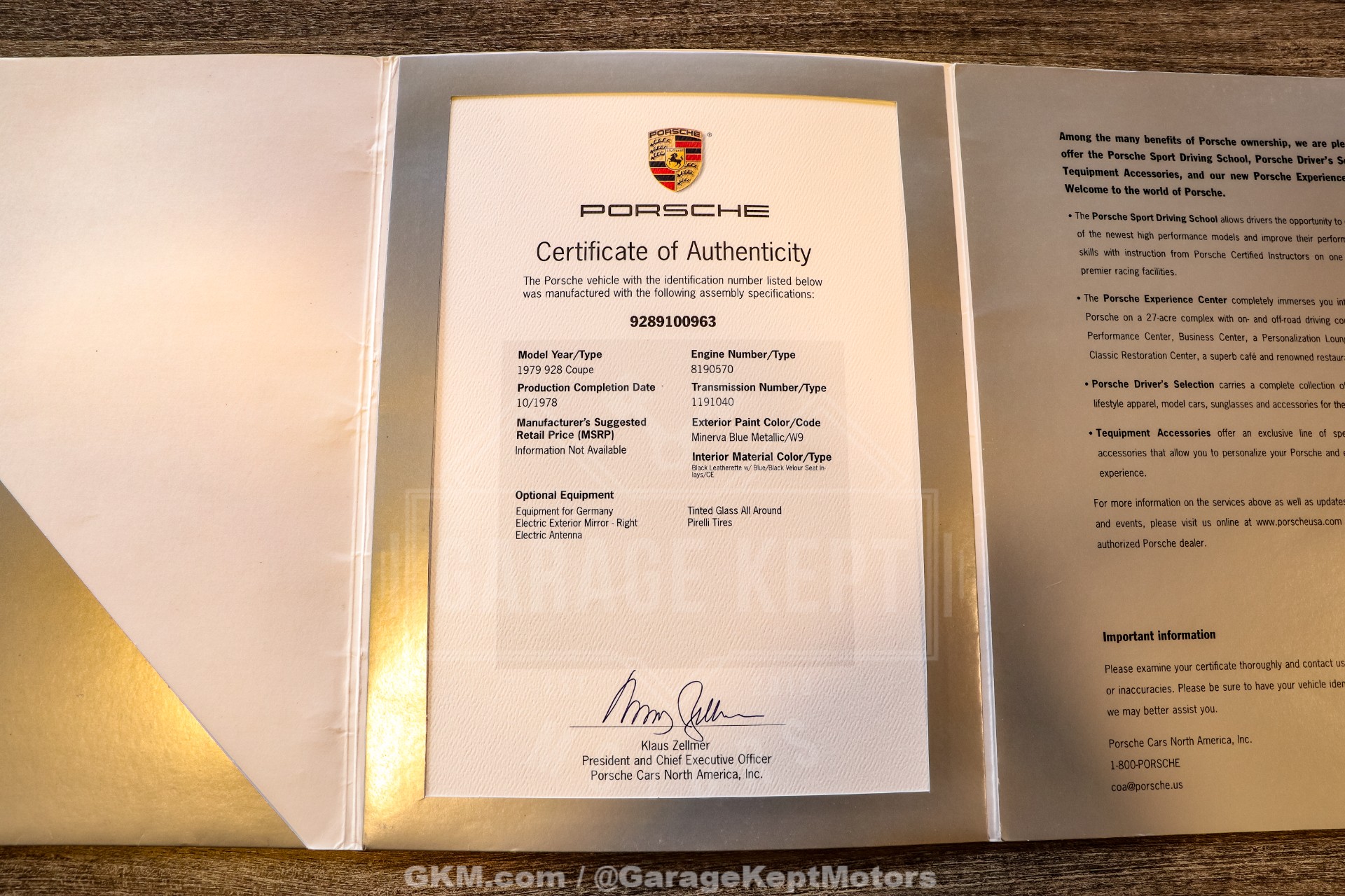 – Porsche Certificate of Authenticity